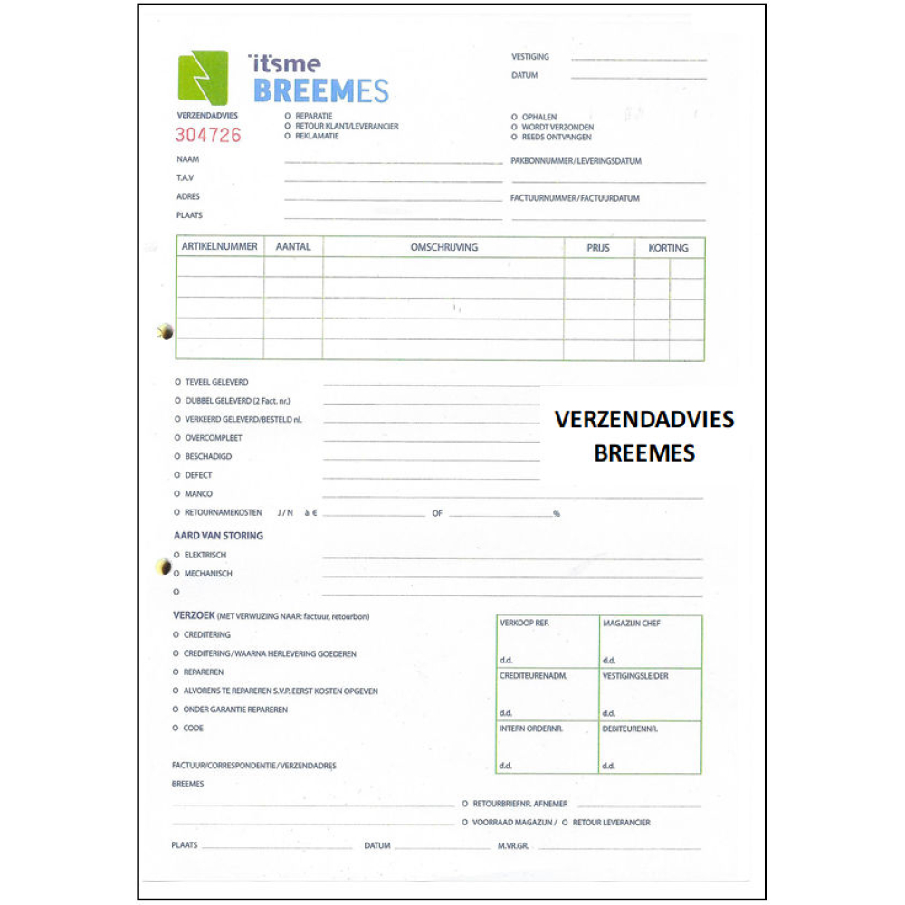 Breemes retourblok-verzendadvies (990019)